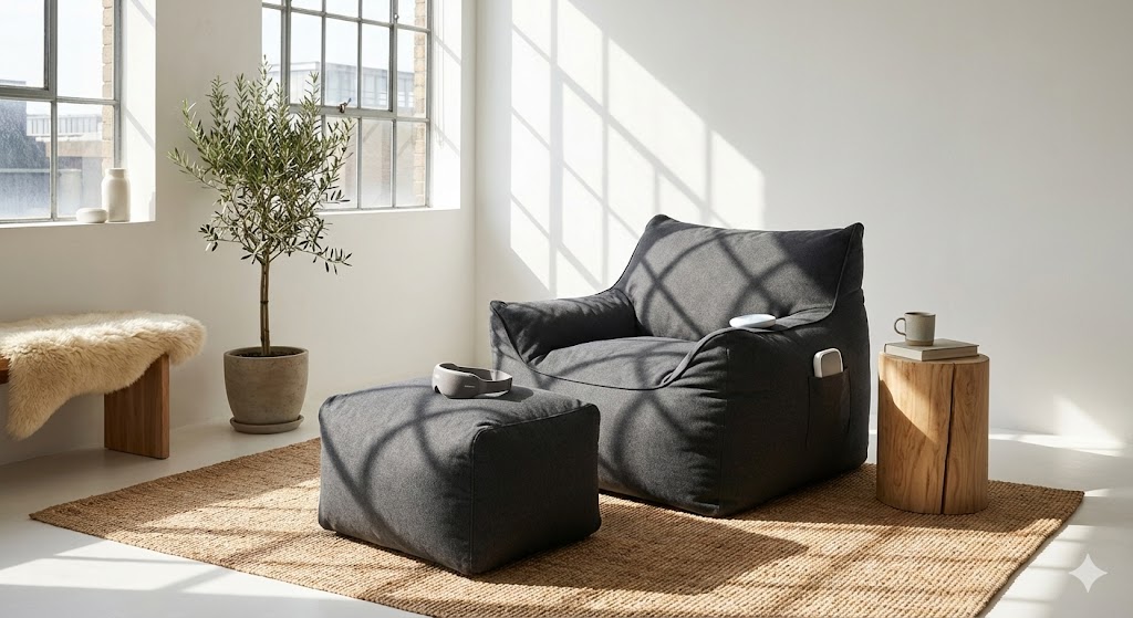 The bean bag chair Game Over High Back with a footstool isn’t just furniture for gamers. For us, it’s an ergonomic “grounding” tool. The high back provides necessary support for the spine and neck, allowing the muscles that have kept you in tension all day to finally “surrender.” The separate footstool helps improve circulation and creates a weightless feeling. It’s your personal “neuro-nest,” where you are physically protected from external chaos.